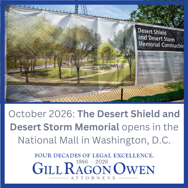 Jenny Teeter, director and shareholder at Gill Ragon Owen, P.A., played a part seven years ago in a memorial that comes to fruition in October 2026. The Desert Shield and Desert Storm Memorial opens in the National Mall in Washington, D.C. later this year.